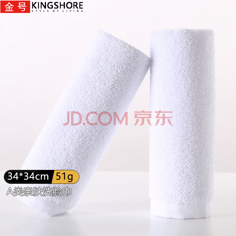 商品相册:金号 纯棉方巾 抹手毛巾 酒店白方巾 2条装34*34cm 51g/条第