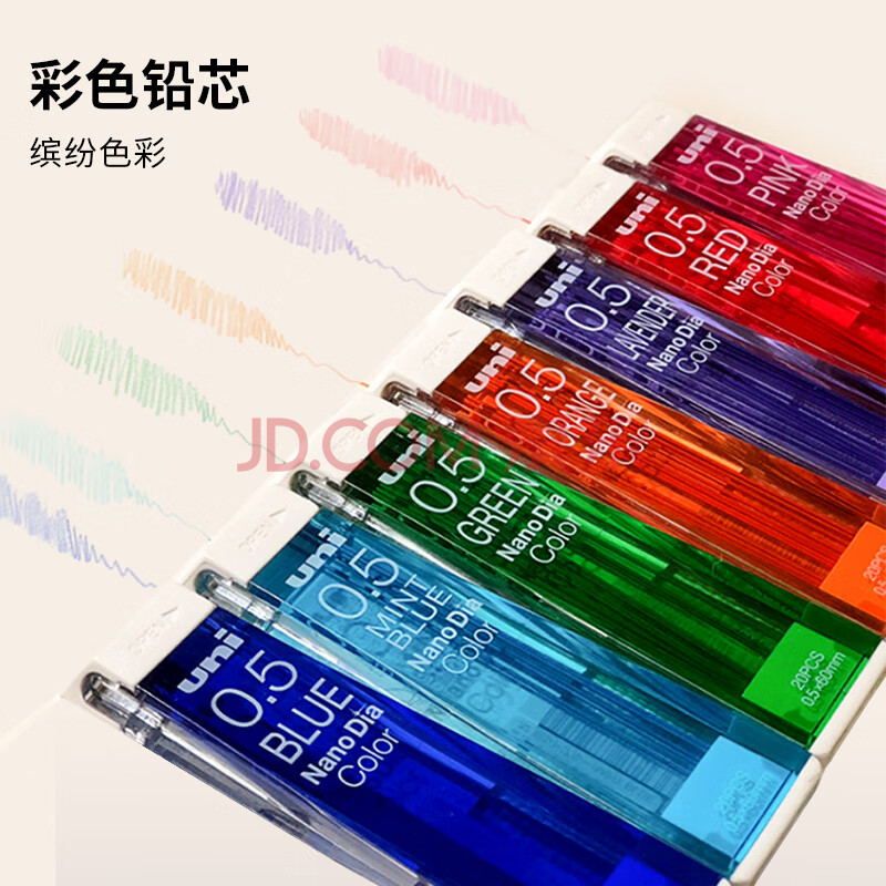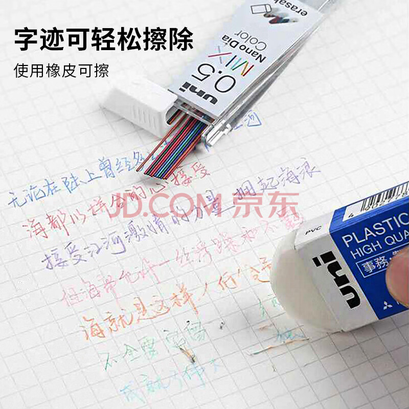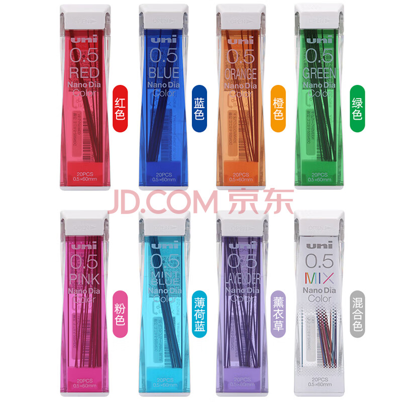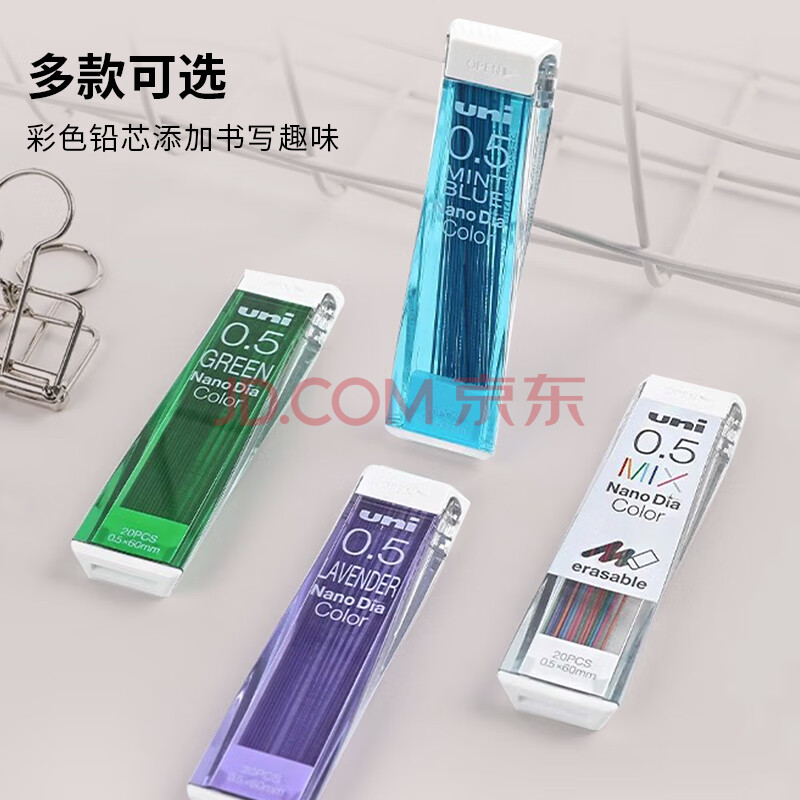 商品相册:uni三菱202NDC彩色可擦铅芯0.5mm学生绘画标记笔记手账书写自动铅笔芯 薄荷蓝 20根/管第