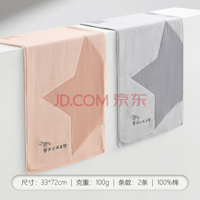商品相册:新亚毛巾纯棉纱布成人大毛巾2条吸水速干洗澡洗脸巾不掉毛手巾 粉+灰第