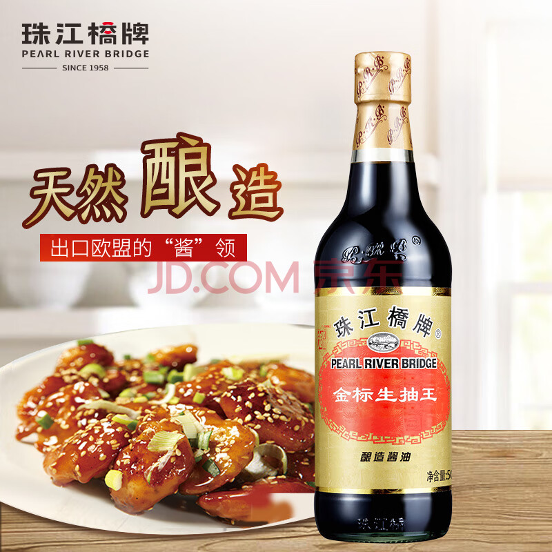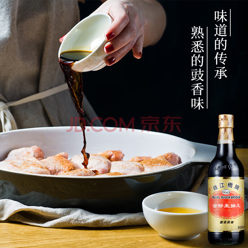 商品相册:珠江桥牌金标生抽王500ml 0脂肪生抽酱油天然生晒酿造调味 中华老字号第
