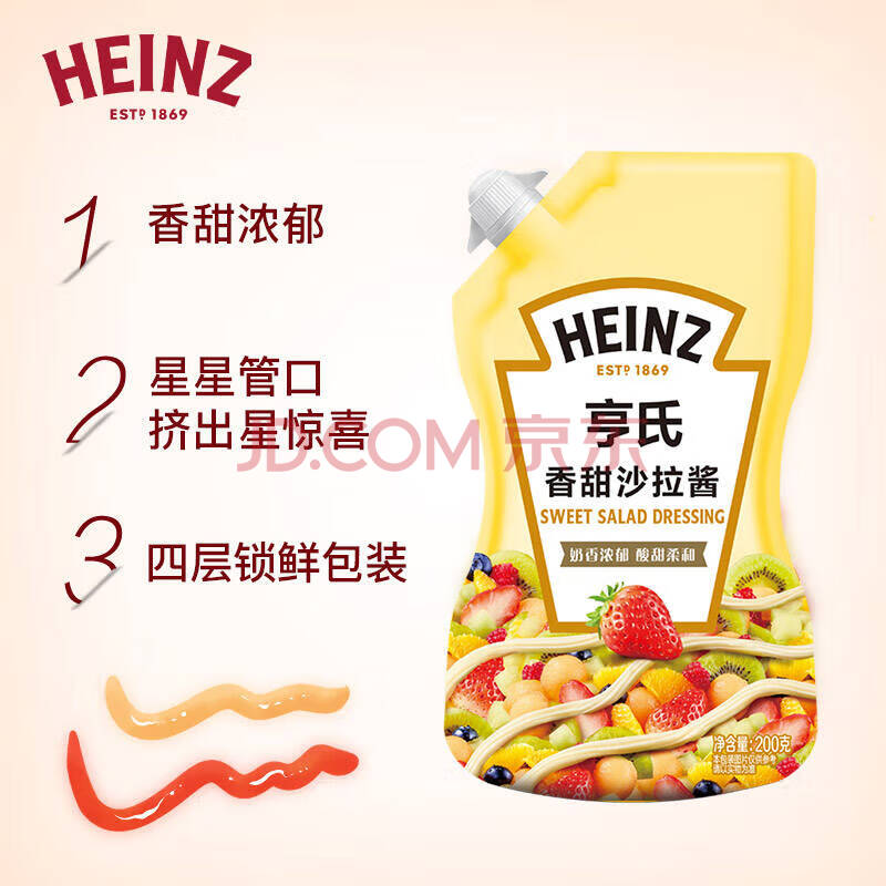 商品相册:亨氏(Heinz) 沙拉酱 香甜沙拉酱 蔬菜水果沙拉寿司酱 200g袋装第