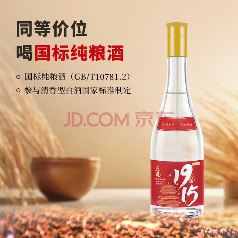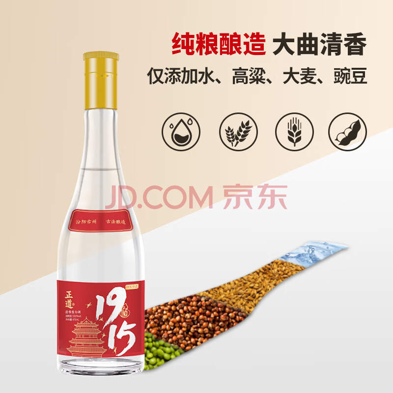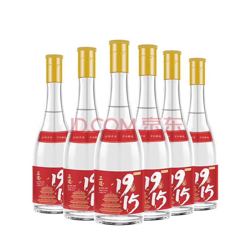商品相册:京东京造 正道1915 53度 清香型白酒475ml*6 杏花村 口粮酒 高粱白酒第