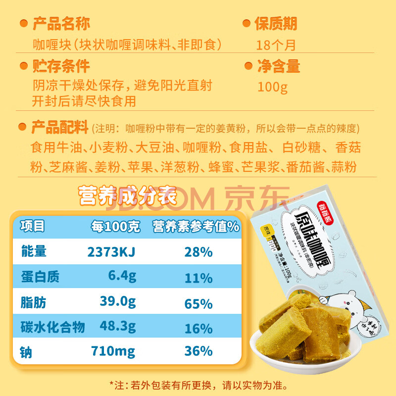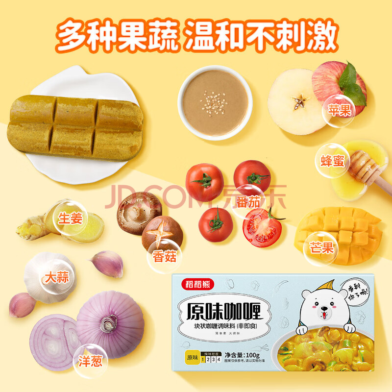 商品相册:稻稻熊 咖喱100g*2盒 原味日式果蔬咖喱块儿童宝宝 不辣咖喱酱调料第