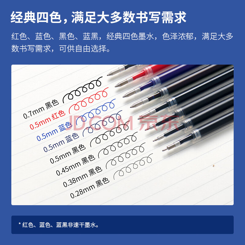 商品相册:KACO文采亚规按动笔芯0.5 中性笔芯 双球珠速干 墨兰色 10支装第