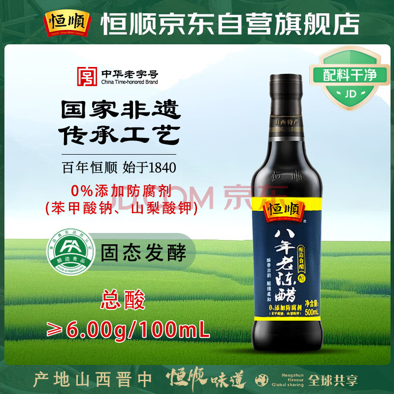 商品相册:恒顺八年 老陈醋 6度 500ml 山西特产 古法精酿 不添加防腐剂 第