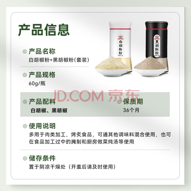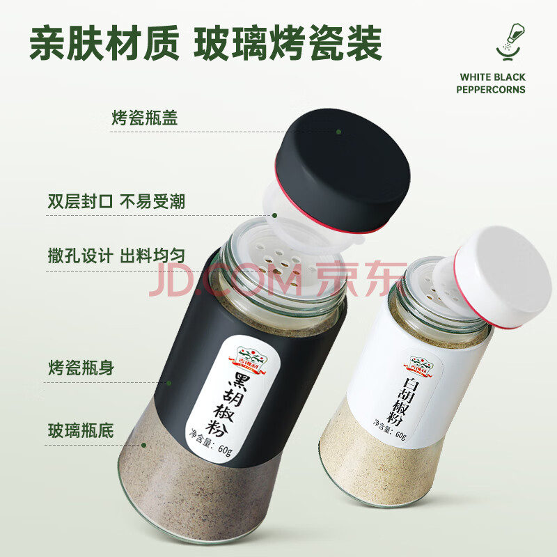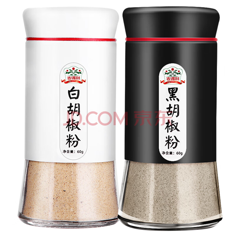 商品相册:吉得利黑胡椒粉白胡椒粉60g*2 双瓶省心装 亲肤玻璃烤瓷瓶 炒菜煲汤粉料第