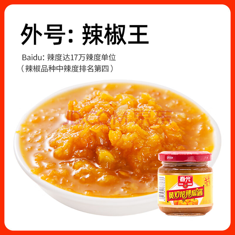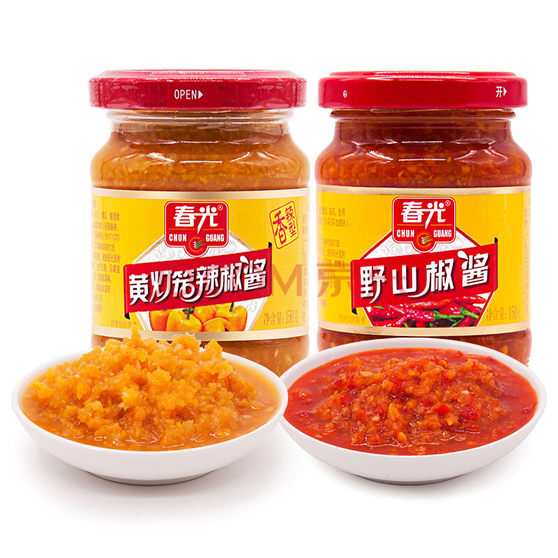 商品相册:春光食品 海南特产 黄灯笼+野山椒0脂辣椒酱香辣型 150g*2 黄椒酱第