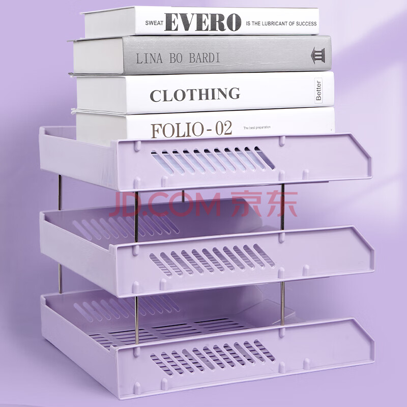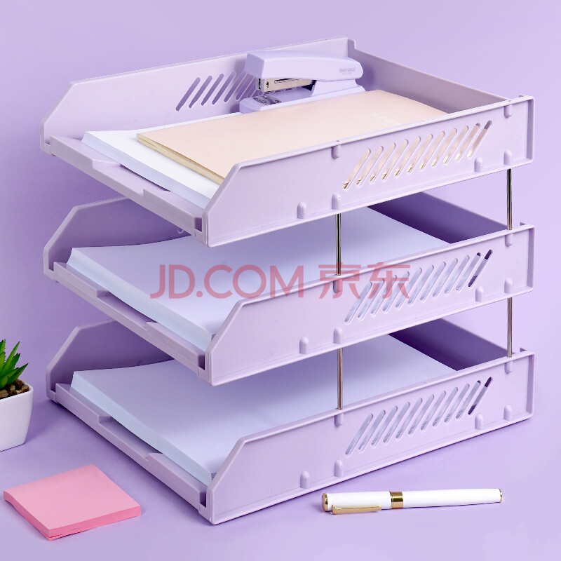 商品相册:西玛(SIMAA)莫兰迪三层镂空收纳文件座 自由拆卸组装三层文件盘/文件框/文件架 办公用品 香芋紫6357第