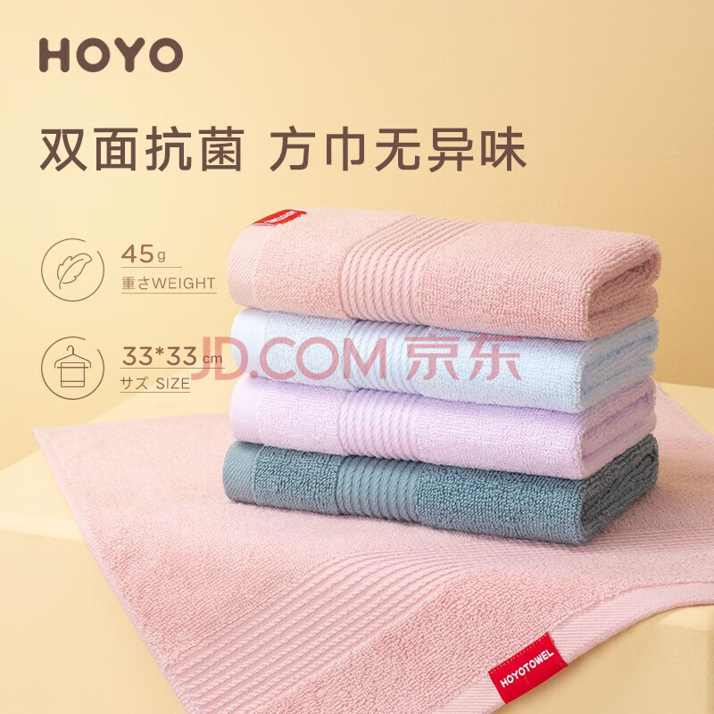 商品相册:HOYO日本儿童毛巾纯棉 抗菌洗漱洗脸洗澡小毛巾口水巾4条装 藤紫/若兰第