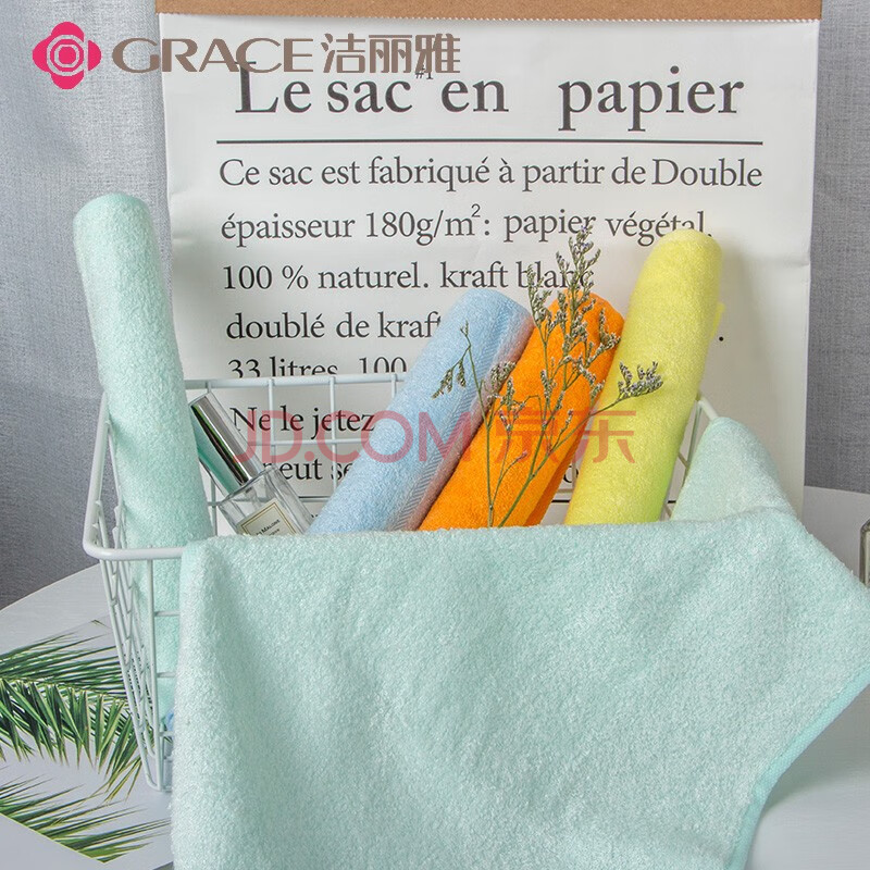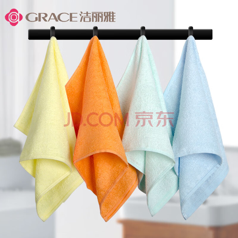 商品相册:洁丽雅 竹纤维小毛巾4条装 柔软素色儿童成人家用洗脸宝宝面巾27*48cm第