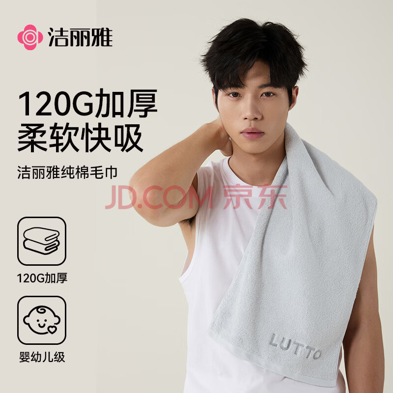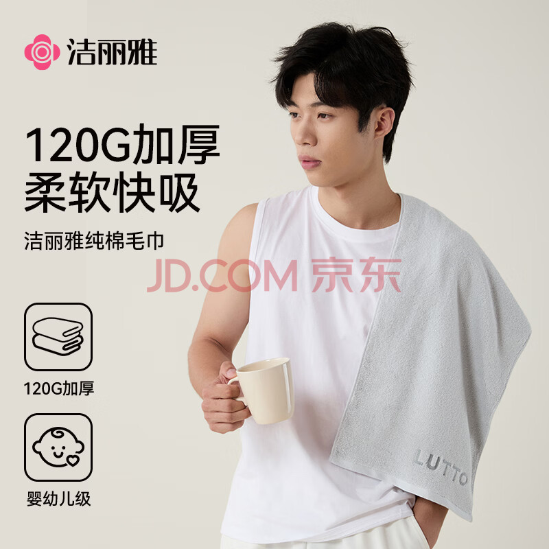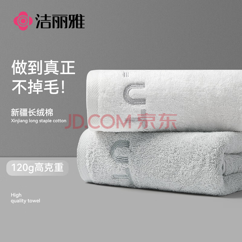 商品相册:洁丽雅纯棉毛巾10A抗菌不掉毛120克2条加厚新疆棉洗澡洗脸柔软洗脸吸水第