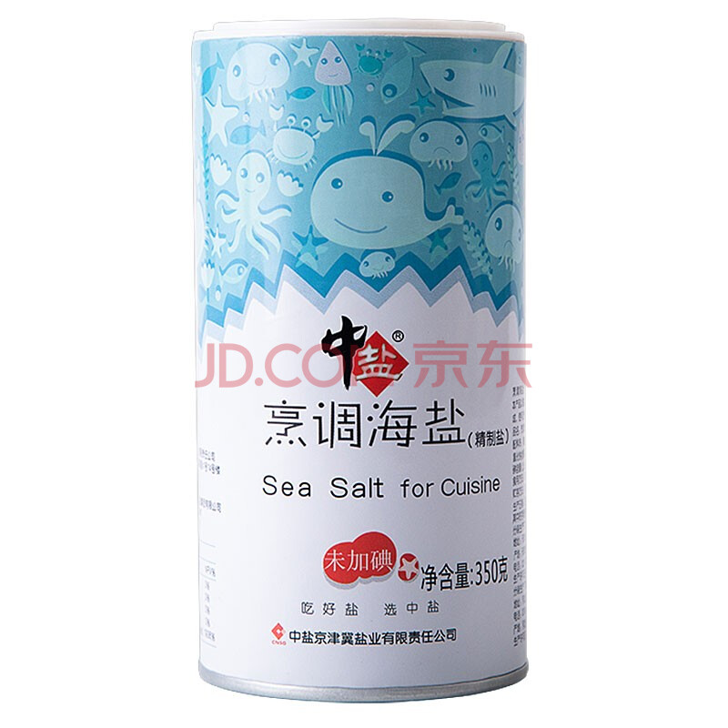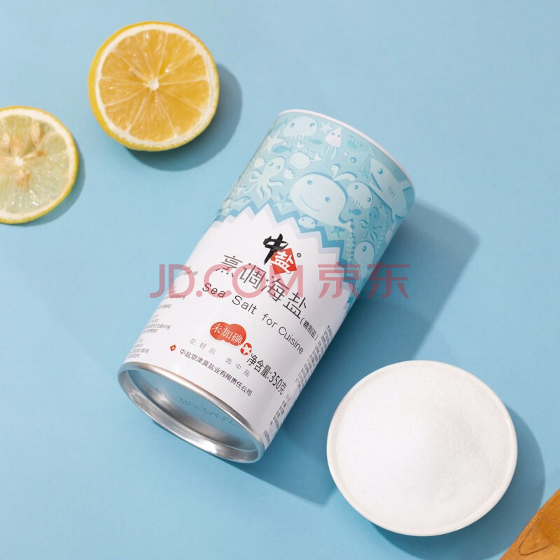 商品相册:中盐 烹调海盐350g罐装【未加碘】精制海盐 使用方便 烧烤必备第