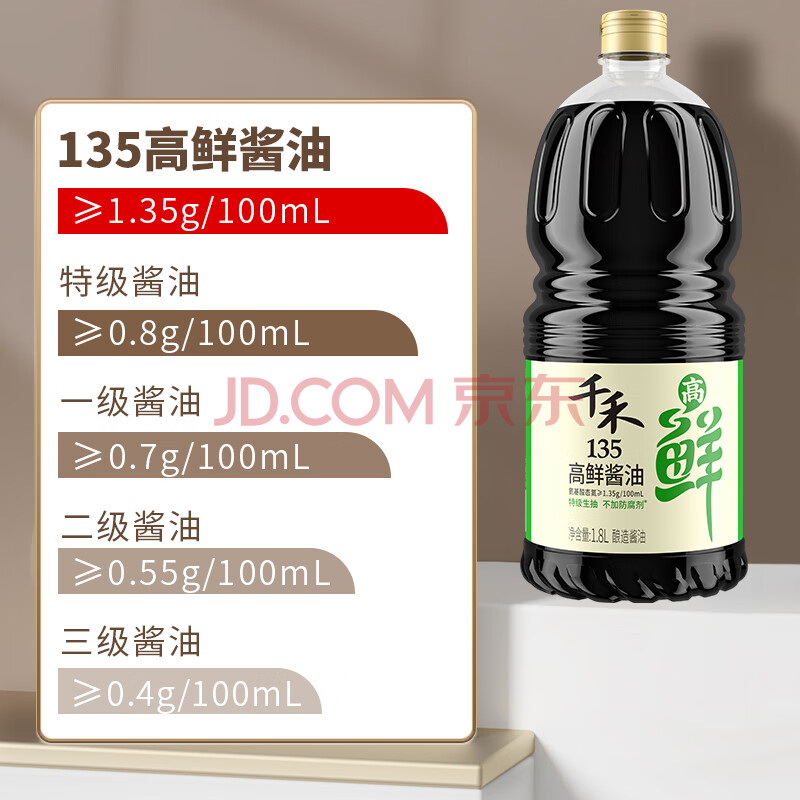 商品相册:千禾高鲜135酱油 1.8L【特级生抽】酿造炒菜凉拌饺子提鲜家用大瓶第