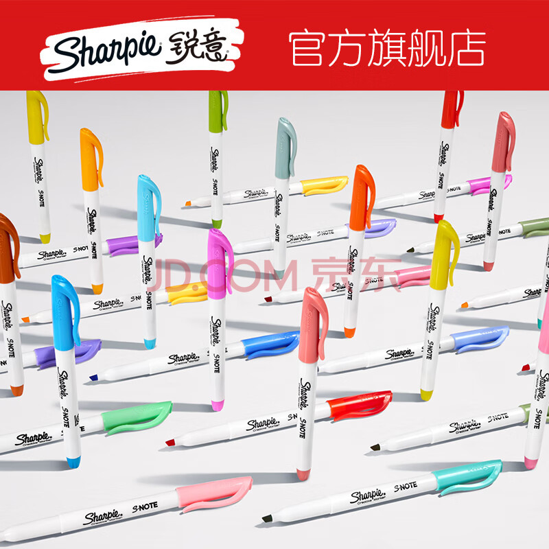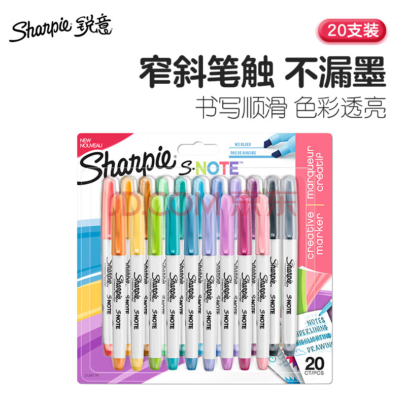 商品相册:锐意(Sharpie)创意彩色水性马克笔记号笔重点标记防褪色速干学生绘画涂色DIY进口窄斜笔头20色装美术写生美育第