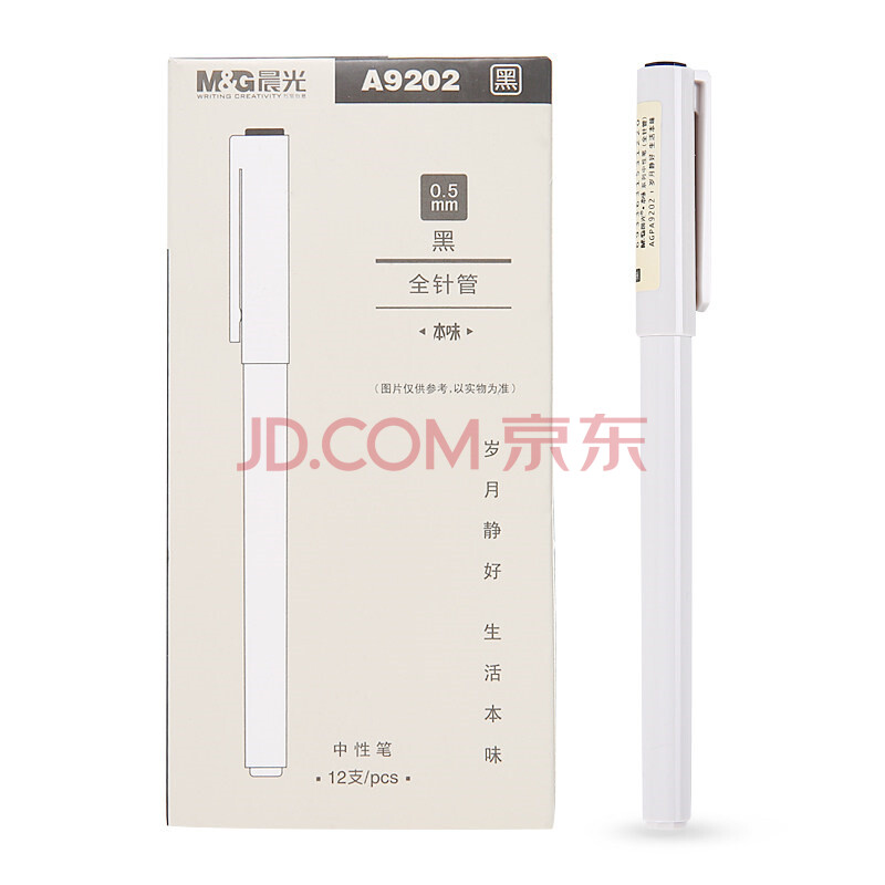 商品相册:晨光中性笔本味AGPA9202黑0.5(纯白杆针管)12支/1盒第