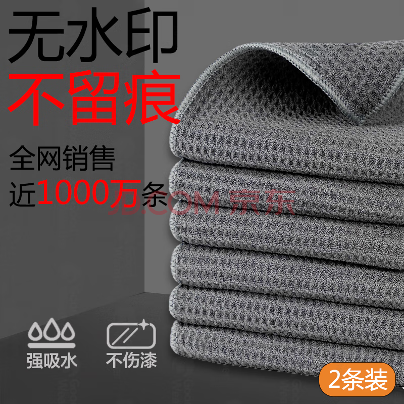 商品相册:天气不错华夫格玻璃毛巾精细柔软洗车玻璃毛巾40*60 2条汽车用品车家两用第