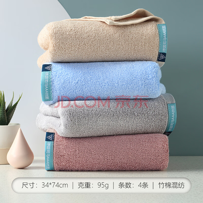商品相册:新亚毛巾竹纤维成人大毛巾4条洗澡洗脸干发巾吸水不掉毛手巾34×74cm 第
