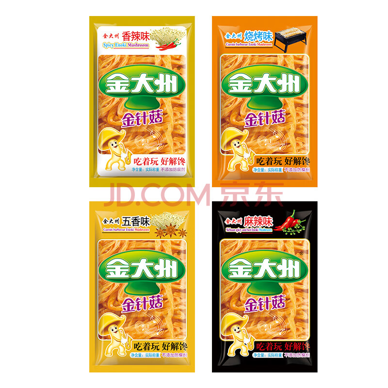 商品相册:金大州金针菇小袋装500g 小吃零食下饭咸菜 孜然烧烤味 四川特产小食品第