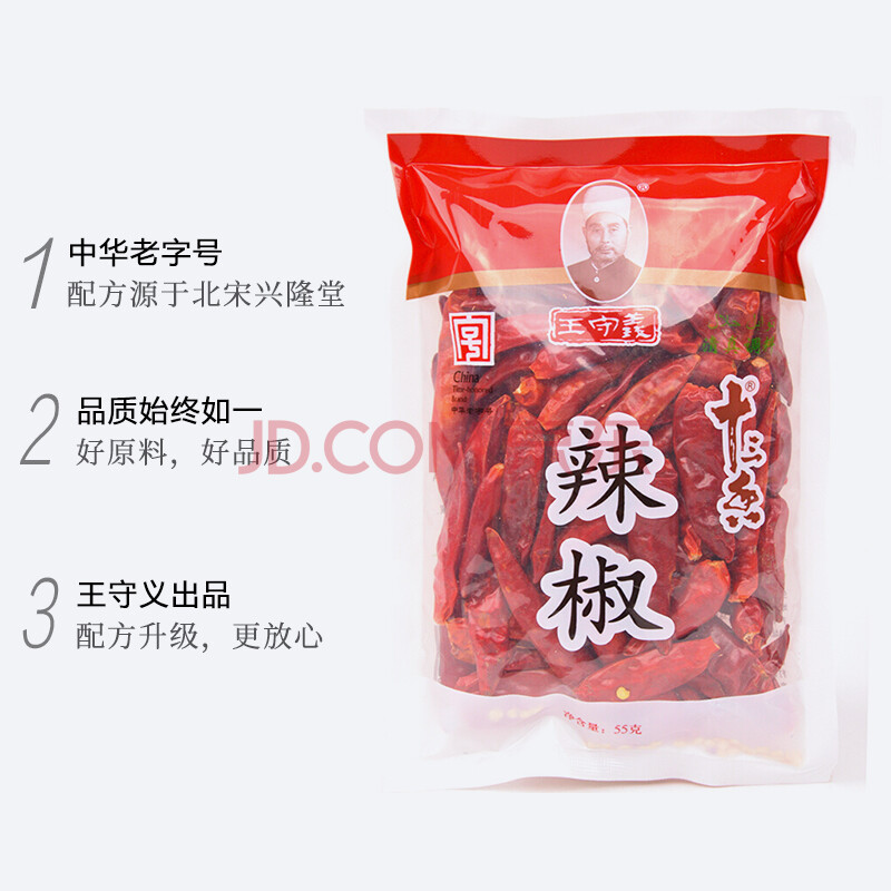 商品相册:王守义 辣椒 55g袋装 新一代干辣椒 火锅底料 炖卤配料 中华老字号第