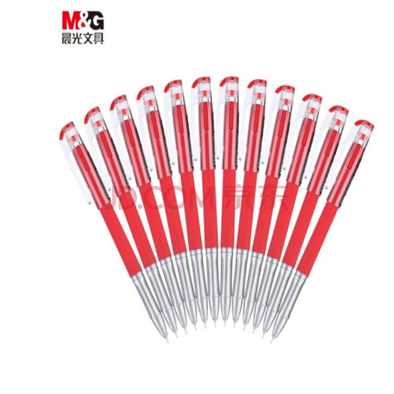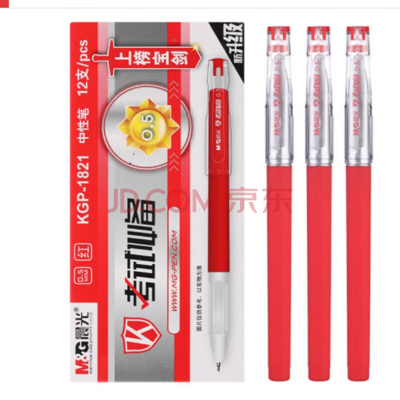 商品相册:晨光(M&G)文具KGP1821红色0.5mm中性笔 全针管拔盖签字笔 学生考试专用水笔 12支/盒 1盒装第