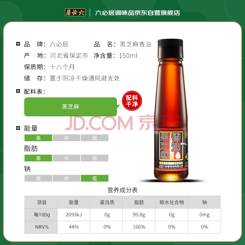 商品相册:六必居 黑芝麻香油 150ml 传统工艺 水代法 凉拌火锅调味 中华老字号第