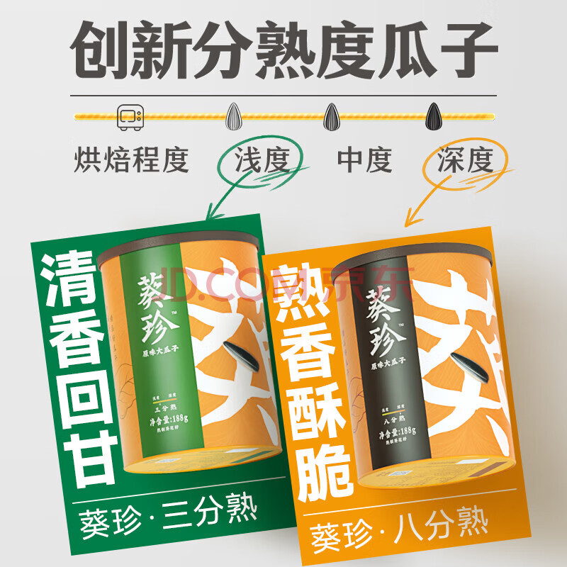 商品相册:葵珍恰恰高端原味大瓜子八分熟188g罐装休闲零食坚果炒货优质原料第