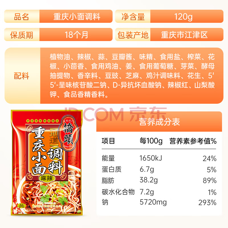 商品相册:桥头重庆小面调料麻辣拌面酱料120g家用凉面煮面专用调料包豌杂面第