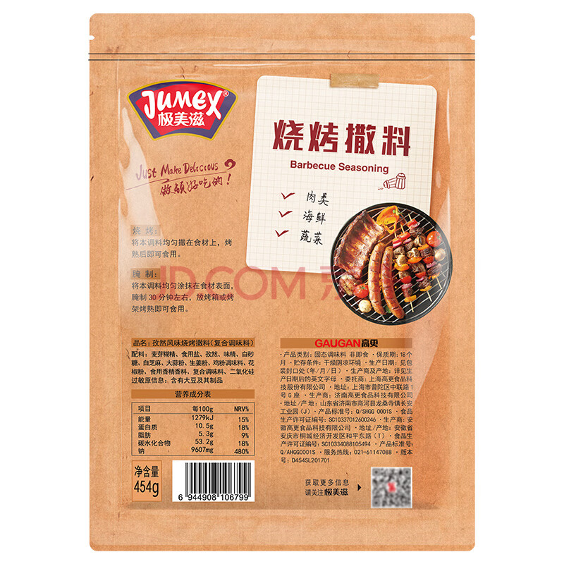商品相册:极美滋烧烤撒料孜然味454g 烤肉串烤肉调味料第