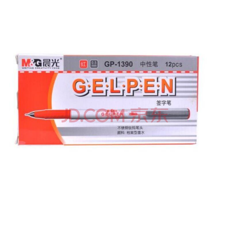 商品相册:晨光(M&G)文具GP1390/0.5mm白色笔杆中性笔全针管办公签字笔学生碳素水笔刷题笔 红色 12支/盒 1盒装第