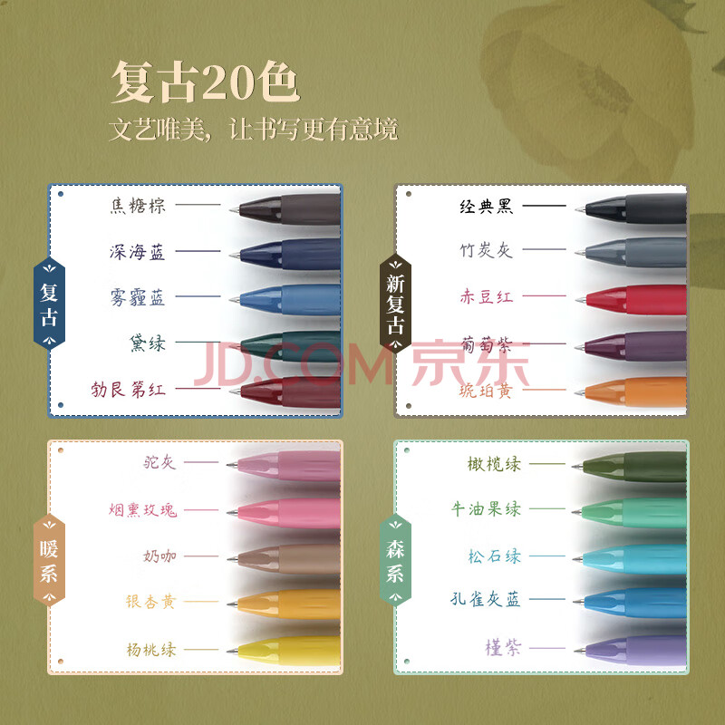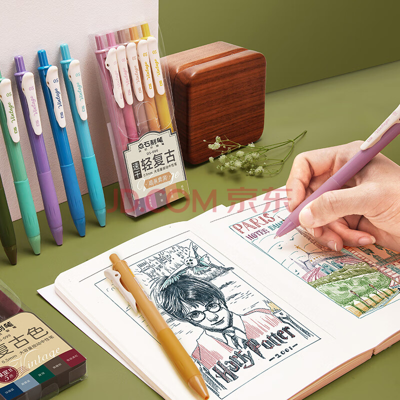商品相册:点石彩色中性笔复古色0.5mm按动签字笔子弹头学生手账笔标记笔练字刷题黑笔开学季必备099经典5色第