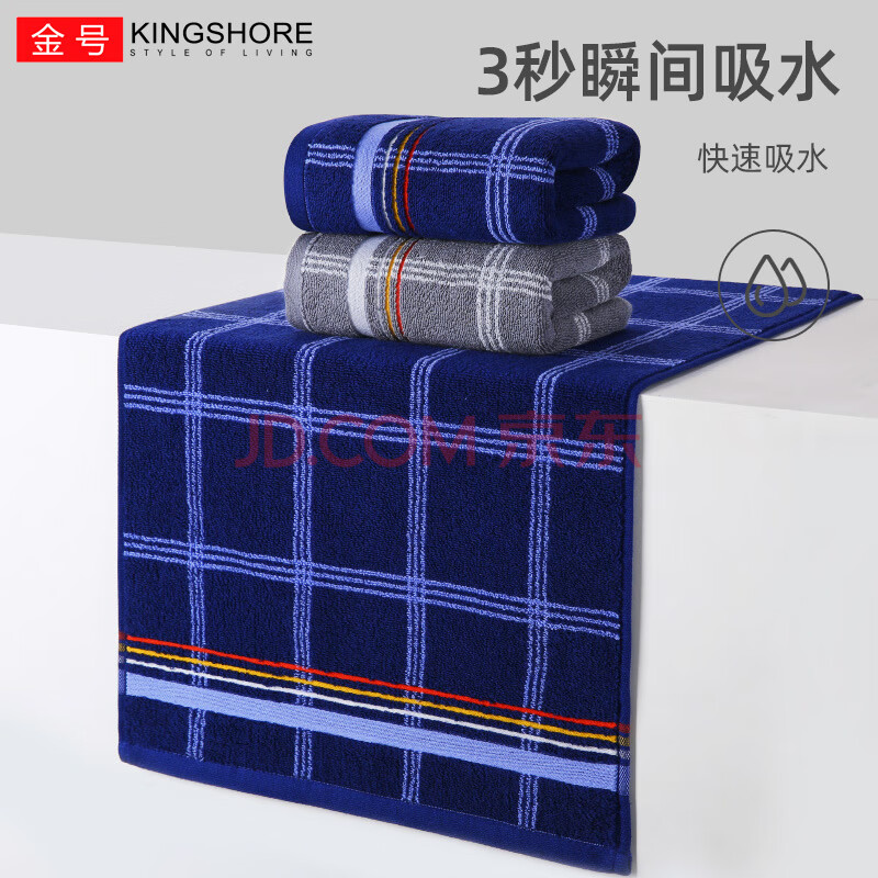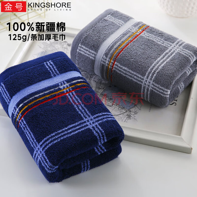 商品相册:金号毛巾 提缎加厚纯棉毛巾 A类标准 蓝/灰 2条装 72*36cm 125g/条第