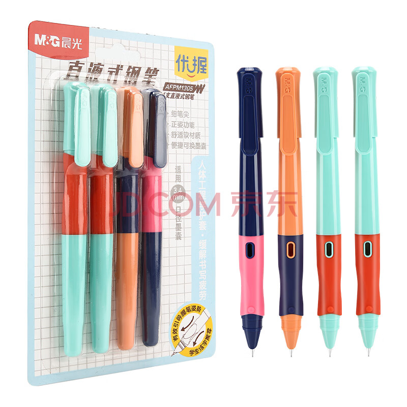 商品相册:晨光(M&G)(M&G)文具优握可擦正姿钢笔3.4mm口径 学生儿童墨囊矫姿开学写字笔(本品不含墨囊)4支装AFPM1305第