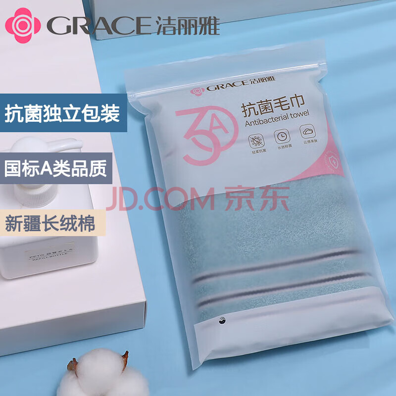 商品相册:洁丽雅7A抗菌A类毛巾简约纯棉成人洗脸毛巾新疆棉晴空蓝色单条70*34cm第