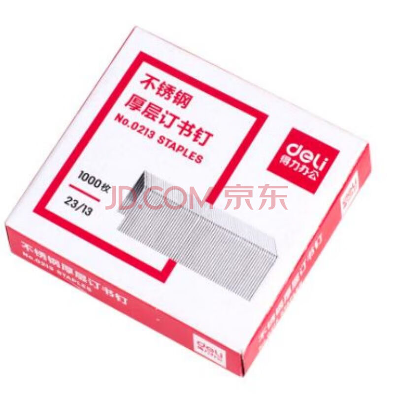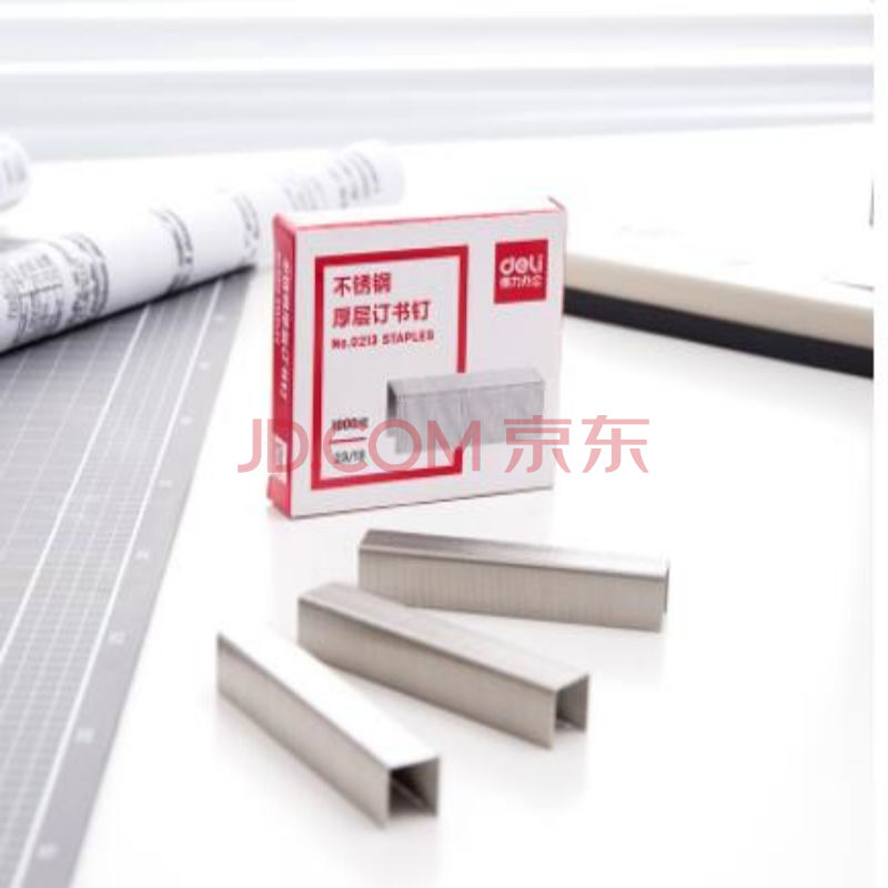 商品相册:得力(deli)0213不锈钢厚层订书钉/订书针办公通用23/13(1000枚/盒)5盒装第