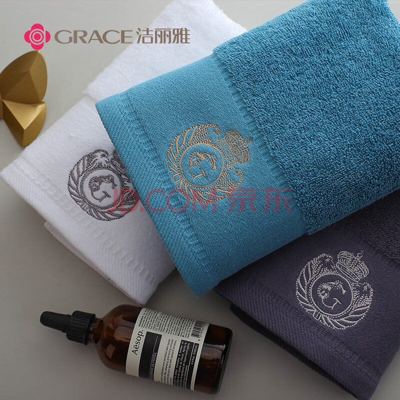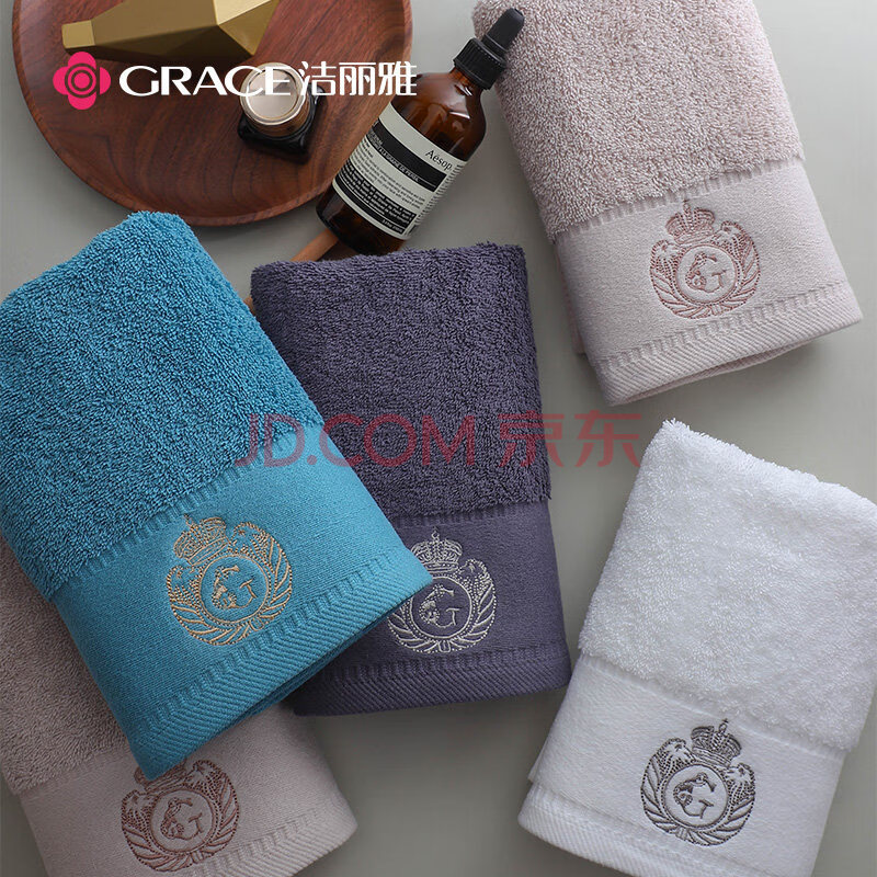 商品相册:洁丽雅(Grace)五星级酒店大毛巾2条纯棉家用加大加厚吸水长绒棉洗脸面巾180G/条第
