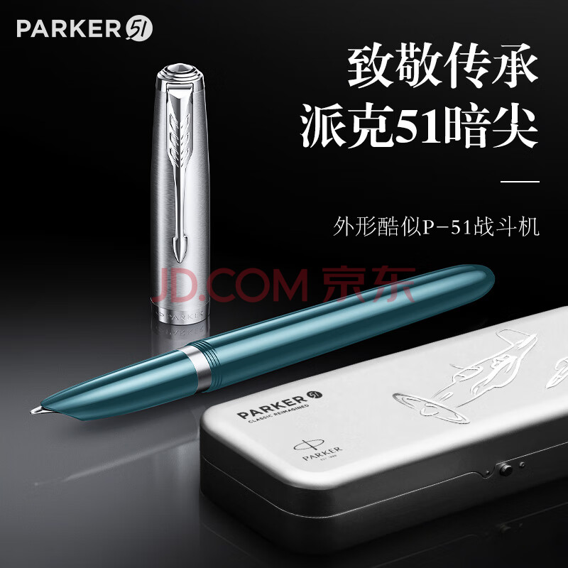 商品相册:派克(PARKER)钢笔 商务办公书写练字高档礼物签字笔复古礼盒 51格鲁曼青白夹墨水笔第