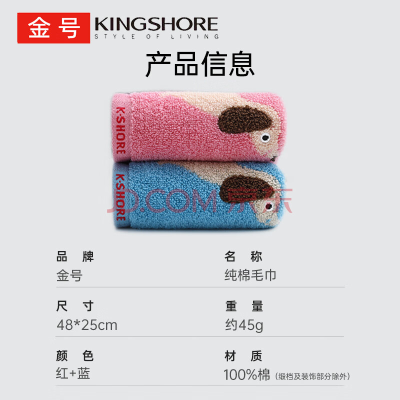 商品相册:金号毛巾家纺 纯棉A类婴儿柔软洗脸面巾 二条装 红/蓝 45g/条第