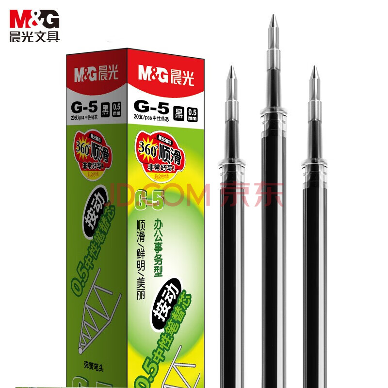 商品相册:晨光(M&G)G-5黑色0.5mm按动子弹头中性笔芯 签字笔替芯 水笔芯(K35/S01适用) 20支/盒【ZY】第
