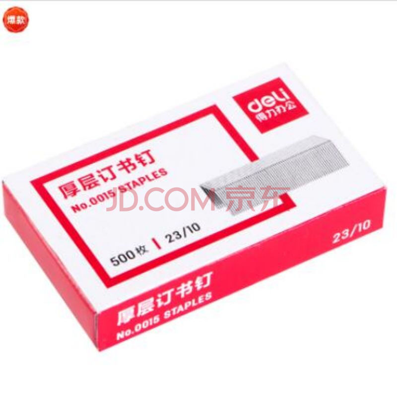 商品相册:得力(deli)0015厚层订书钉/订书针办公通用23/10(500枚/盒)10盒装第