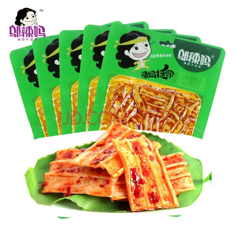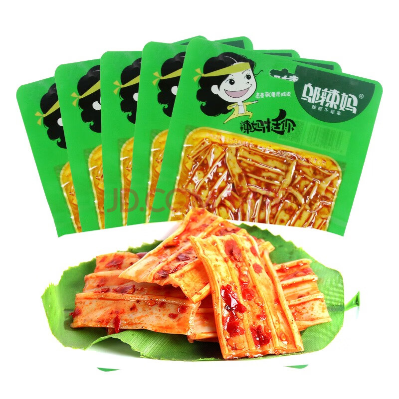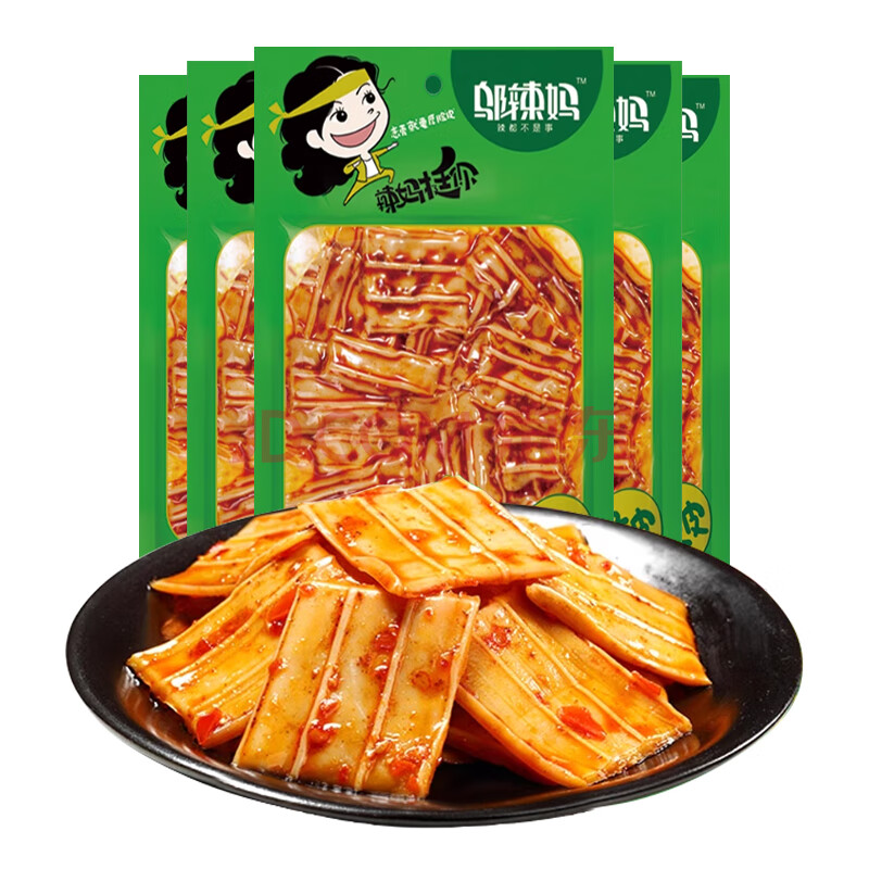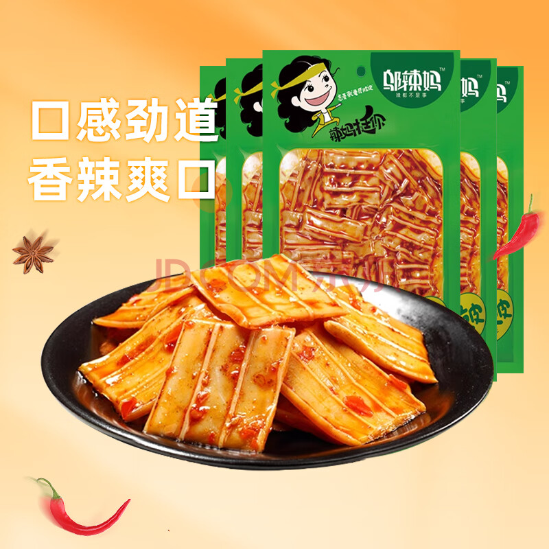 商品相册:邬辣妈 香辣脆皮 辣条零食 童年回忆网红辣味小吃 90g*5包第1张/共7