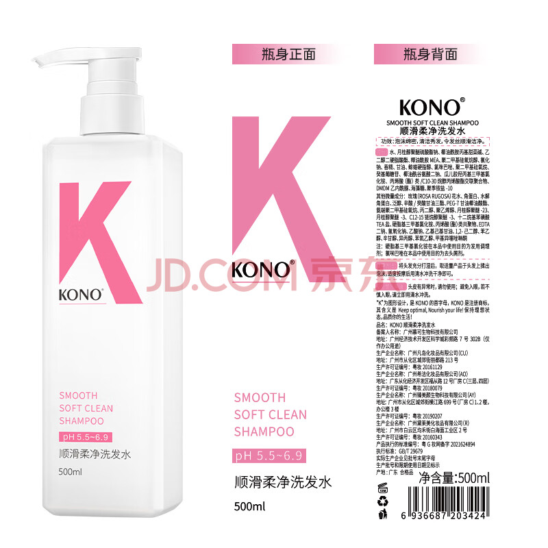 商品相册:KONO卡厘顺滑水润洗护套装500ml*2 柔顺发丝温和清洁洗发露香味持久第