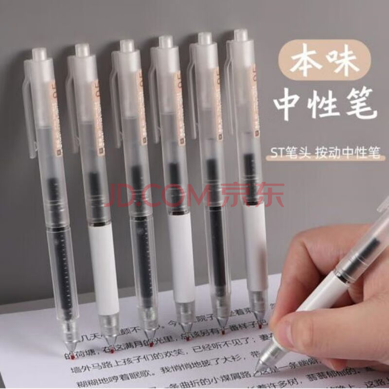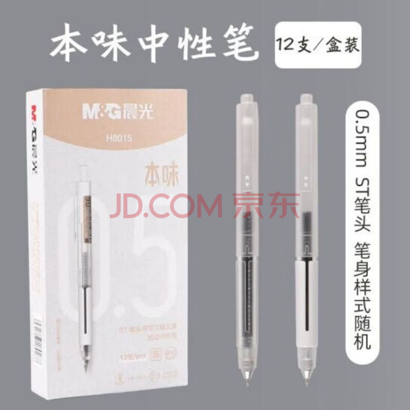 商品相册:晨光0.5mmAGPH8015本味系列按动中性笔0.5速干尖锥st学生用黑色碳素水性签字笔芯考试专用高颜值12支/盒装第