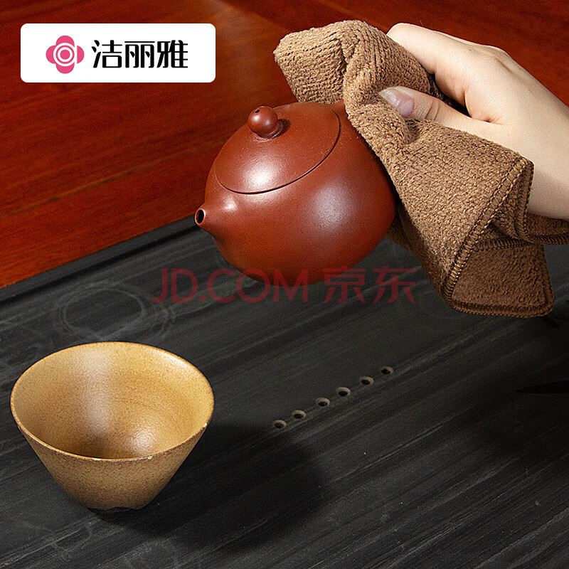 商品相册:洁丽雅 加厚茶巾2条装 茶具配件茶垫方巾毛巾擦桌子清洁抹布家用棕色2条第