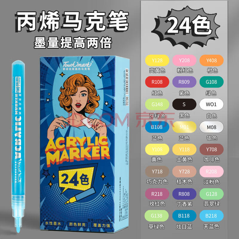 商品相册:Touch mark丙烯马克笔24色儿童水彩笔涂鸦笔美术画笔防水不透色手绘DIY丙烯颜料学生儿童礼物美育第