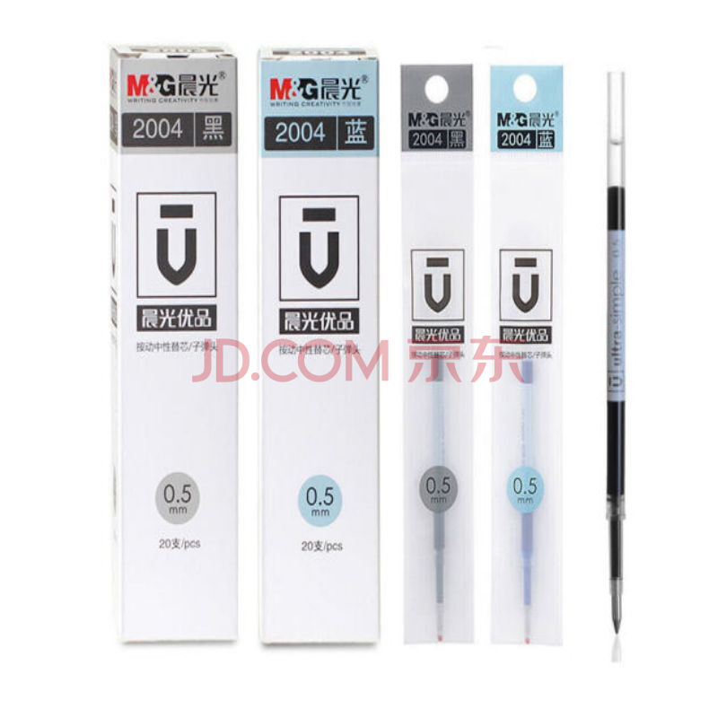 商品相册:晨光优品2004 AGR67T34 按动头0.5mm 中性笔水笔芯中性替芯 蓝色笔芯20支/盒 1盒装第