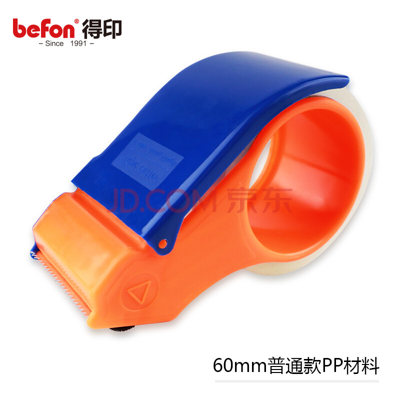 商品相册:得印(befon)文具60mm封箱器打包器胶带底座 透明胶带切割器胶带封箱器 PP材质 普通款60mm 橙+蓝1726第