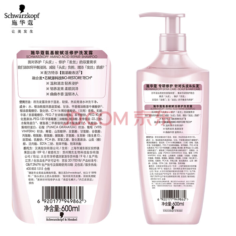 商品相册:施华蔻(Schwarzkopf)氨基酸赋活修护洗护套装(600ml洗+400ml润)修护洗发水洗头膏团购第