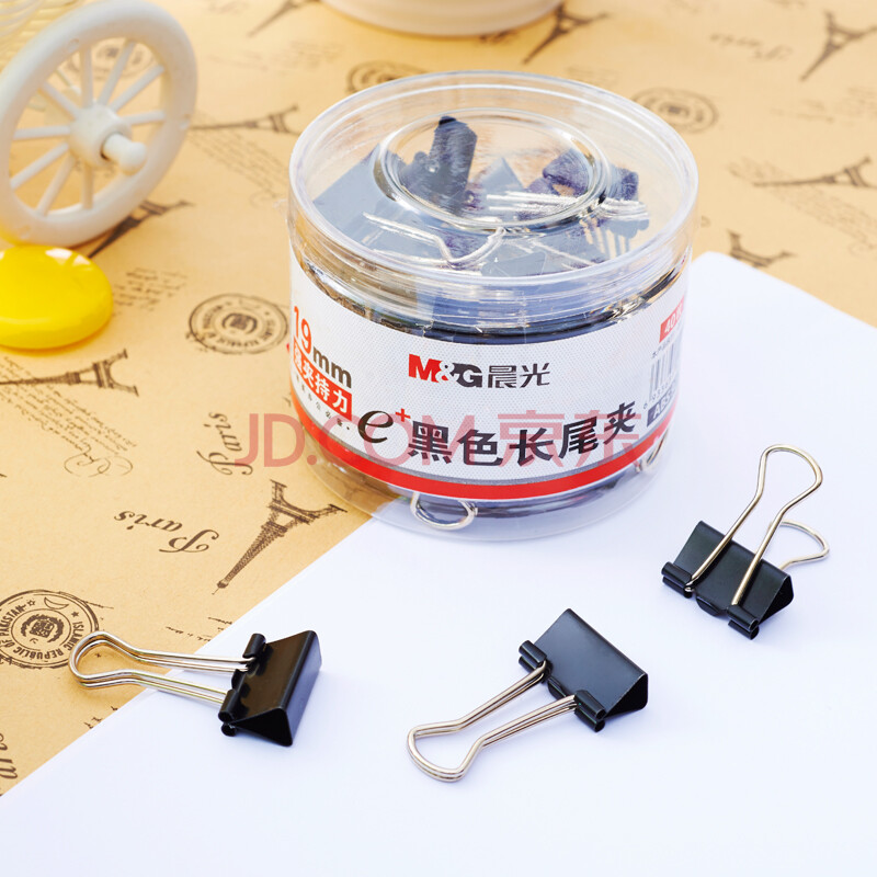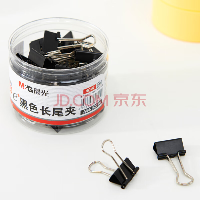 商品相册:晨光(M&G)文具ABS92736 5号19mm 黑色长尾夹 小号金属票据夹 Eplus系列办公燕尾夹 40个/盒 1盒第