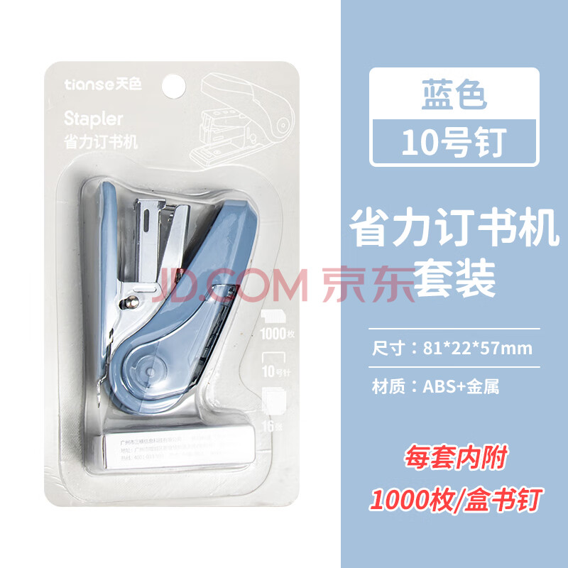 商品相册:天色 省力订书机小型 迷你订书器小订书机套装(订书器+订书钉)10#订书针 办公用品 TS-0211 蓝色第