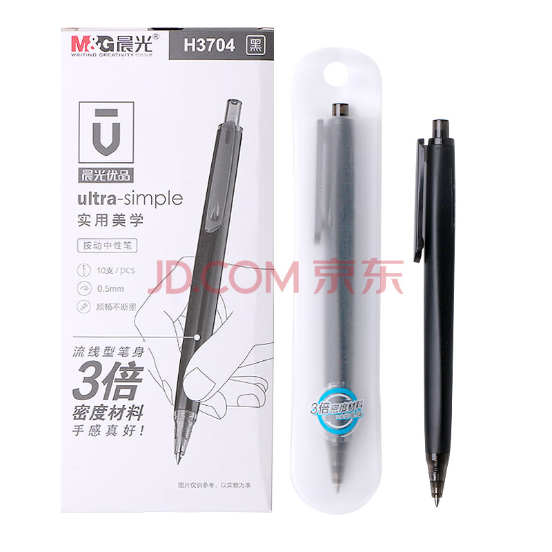 商品相册:晨光按动中性笔芯优品系列磨砂黑0.5水笔签字办公学生用AGPH3704 10支/盒 1盒第